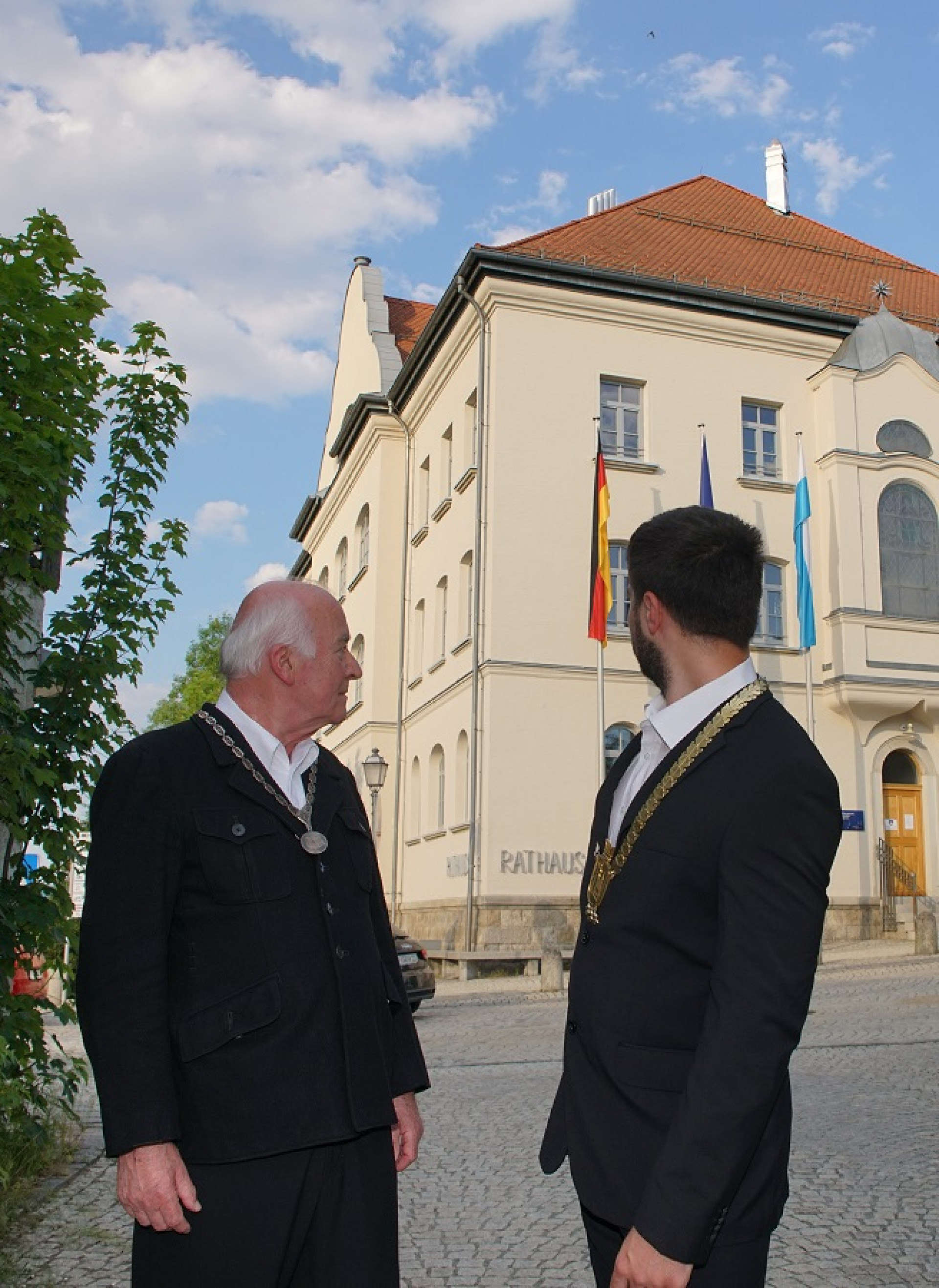 B: Ja, Bürgermeister ist heute sicherlich schwieriger. Seit 1978 ist es deswegen auch hauptberuflich. Übrigens, seit 1972 sind wir kein Markt mehr, sondern Stadt! Außerdem gehören über 10.000 Einwohner jetzt in mein Verwaltungsgebiet!