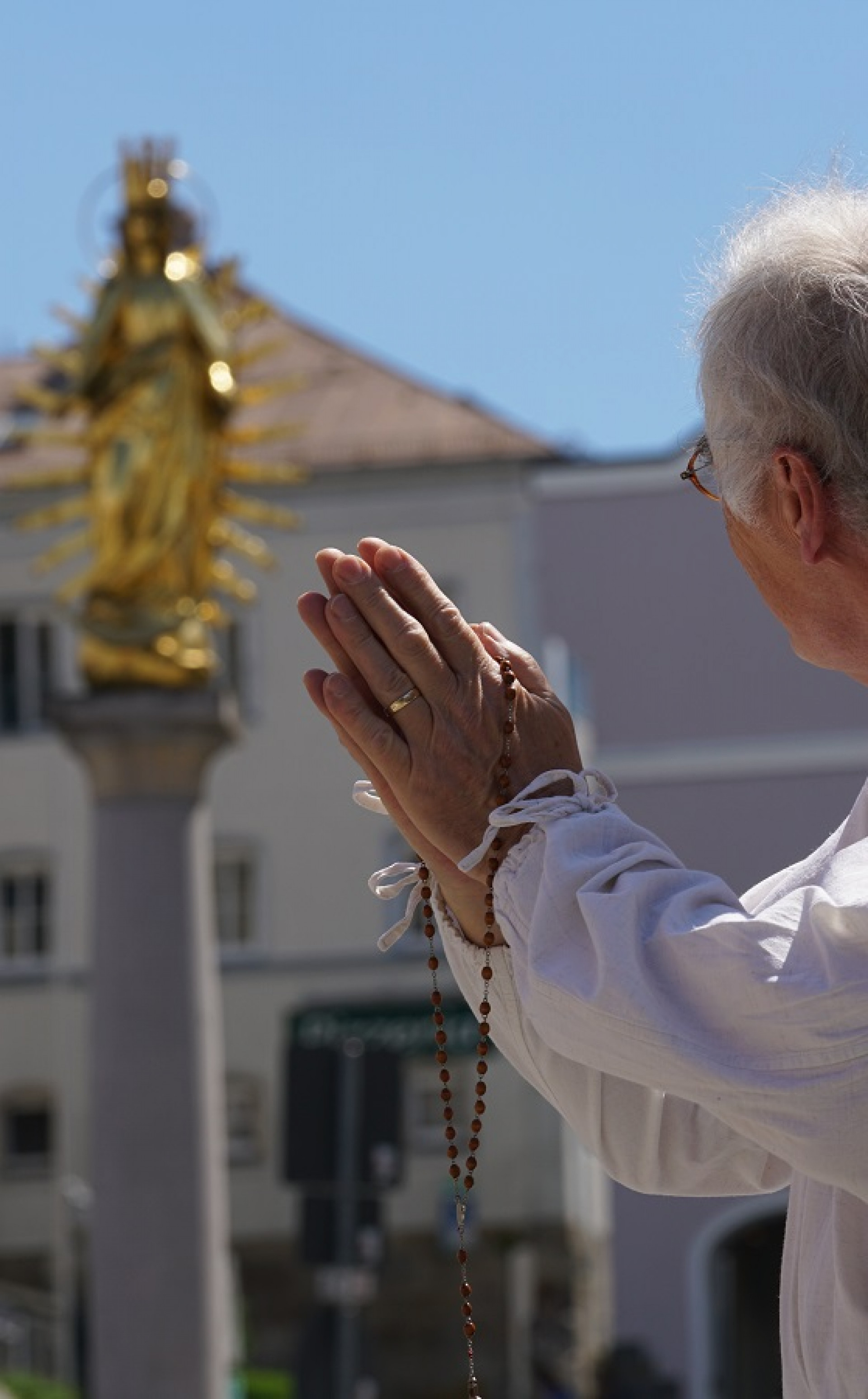 K: Ach, kdopak jsi?Já? Modlím se k naší milé Paní, Matce Boží, není to snad hezká socha?