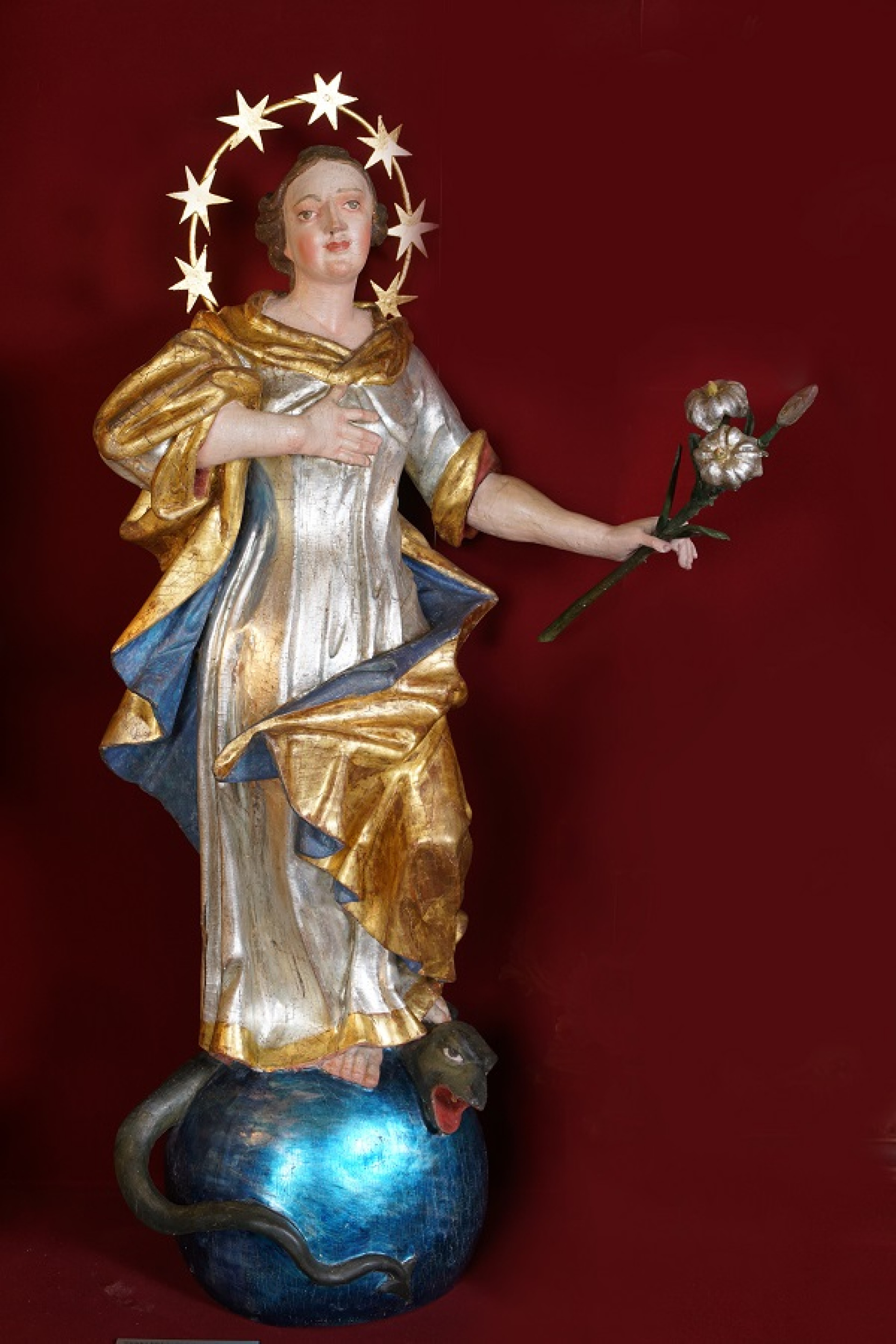 Podívej se na tuto nádhernou mariánskousochu, Marii immaculatu – neposkvrněné početí, pokud tedy nemluvíš latinsky.Jeden starý sochař z Waldkirchenu, jistý Franz Lemberger, ji vytvořil kdysi v 18.století. Po staletí stála v kapli na území městyse. Později našla své čestnémísto právě zde. Ach, promiň, ještě jsem se vůbec nepředstavil: jmenuji seJoseph Kornberger, narodil jsem se už roku 1789. Byl jsem místním hřebíkářem vulici Graben. V nedaleké kapli stála tato socha. Chodil jsem tam často navečerní modlitbu. Musíš si uvědomit, že víra a církev jsou u nás v Bavorskémlese velmi důležité. Bez našeho milého Pána Boha není nic dobré a i my sestáváme dobrými pouze skrze něj – tak nám to stále opakuje farář nebo kaplan. Každýu nás zamíří jednou týdně do kostela, já dokonce rád i čtyřikrát nebo pětkrát.Čím by byl pozemský život bez duchovní útěchy? Samozřejmě mám i černé obce vnaší farnosti. Ale za ně se modlím denně. Můžeš si jen představit, na co asisochař při tvorbě tak vydařeného díla mohl myslet. Byl bych býval rád u toho. Alei když jsem se tolik modlíval, má největší prosba zůstala nenaplněna. Pán minedopřál žádného potomka. Přesto jsem se postaral o to, že po mě na rynku i poletech zůstala památka. Chtěl bys jistě vědět, jaká? Navštiv mě tedy tam venku – ukážuti ji. Nyní mě chvilku nech odříkat motlitbu, u mé milované Matky Boží. Zdrávas,Maria, milosti plná, Pán s tebou, požehnaná ty mezi ženami a požehnaný plodživota tvého…