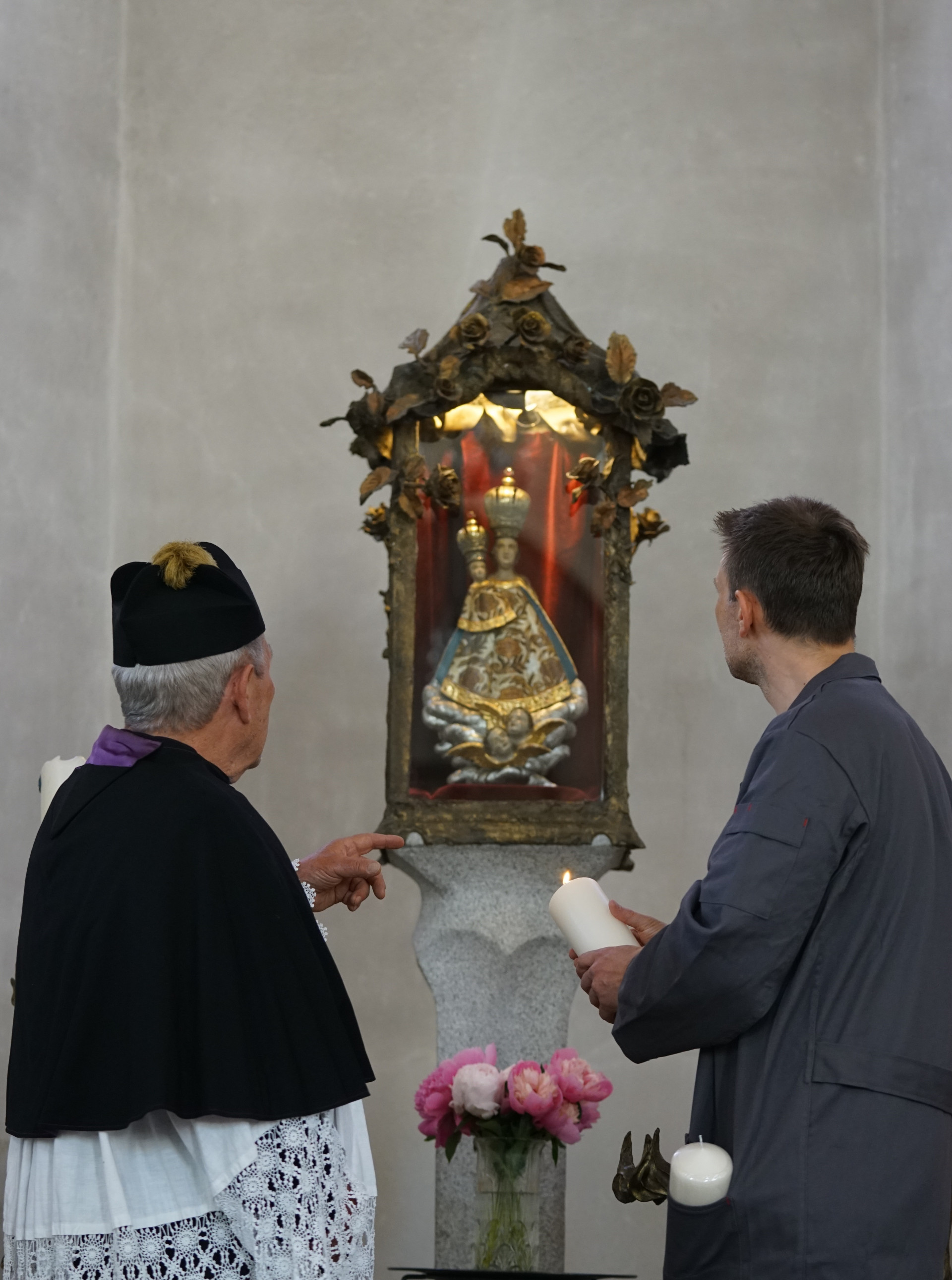 L: Mir scheint schon, dass ich mich in anderer Zeit befinde. Die Kirch war doch ganz anders in meiner Erinnerung, nur die Frischecker Madonna blieb offenbar hier. Zu ihren Füßen wollt ich einst begraben sein.
