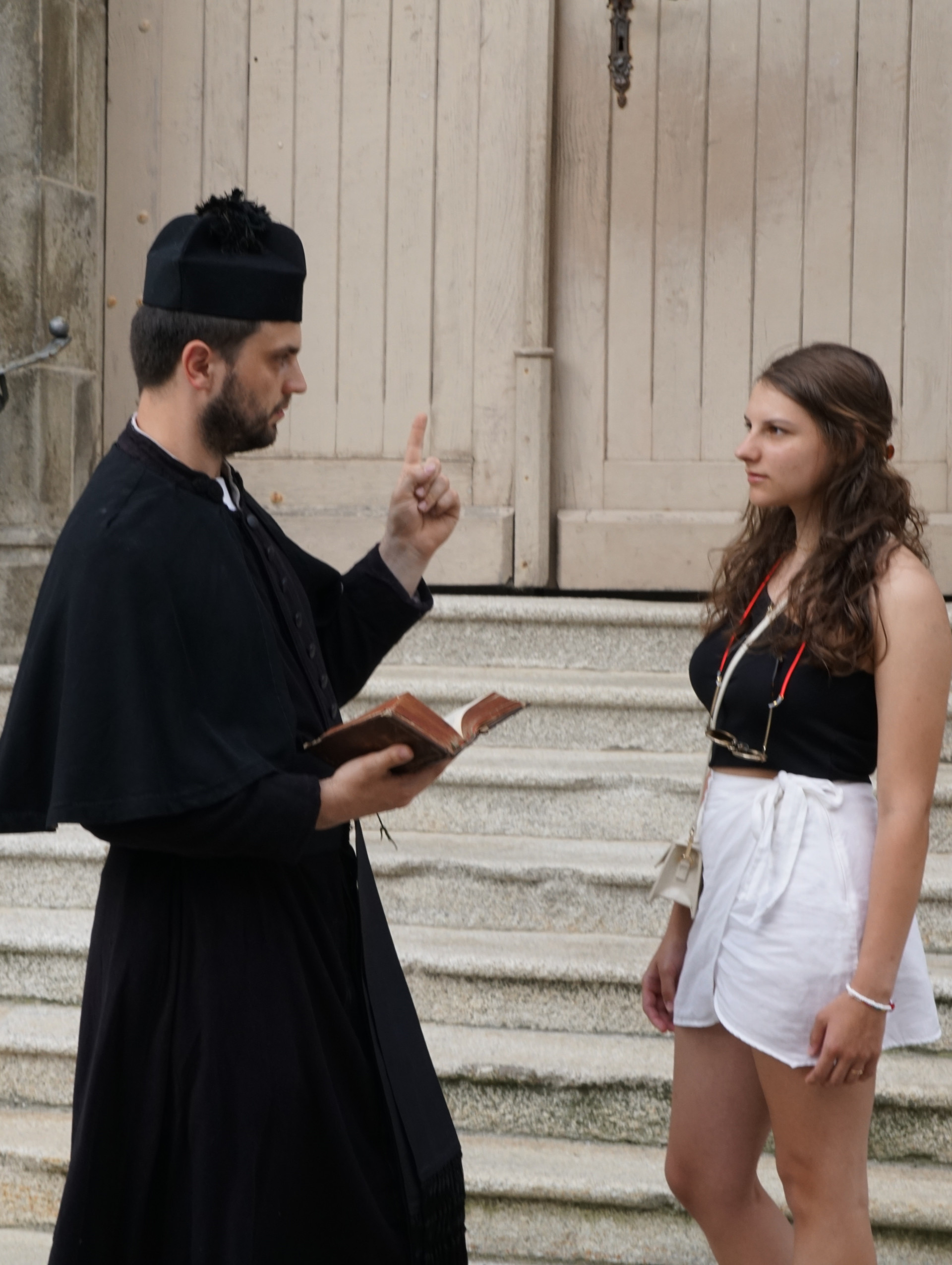 K: Odvolal mě na přechodnou dobu. Ale můžete seho zeptat sama, nahoře na Büchlu v domě, který se nazývá muzeum, tam ho můžetednes potkat. Teď ale se musím dál modlit breviář, tedy rozejděmež se!