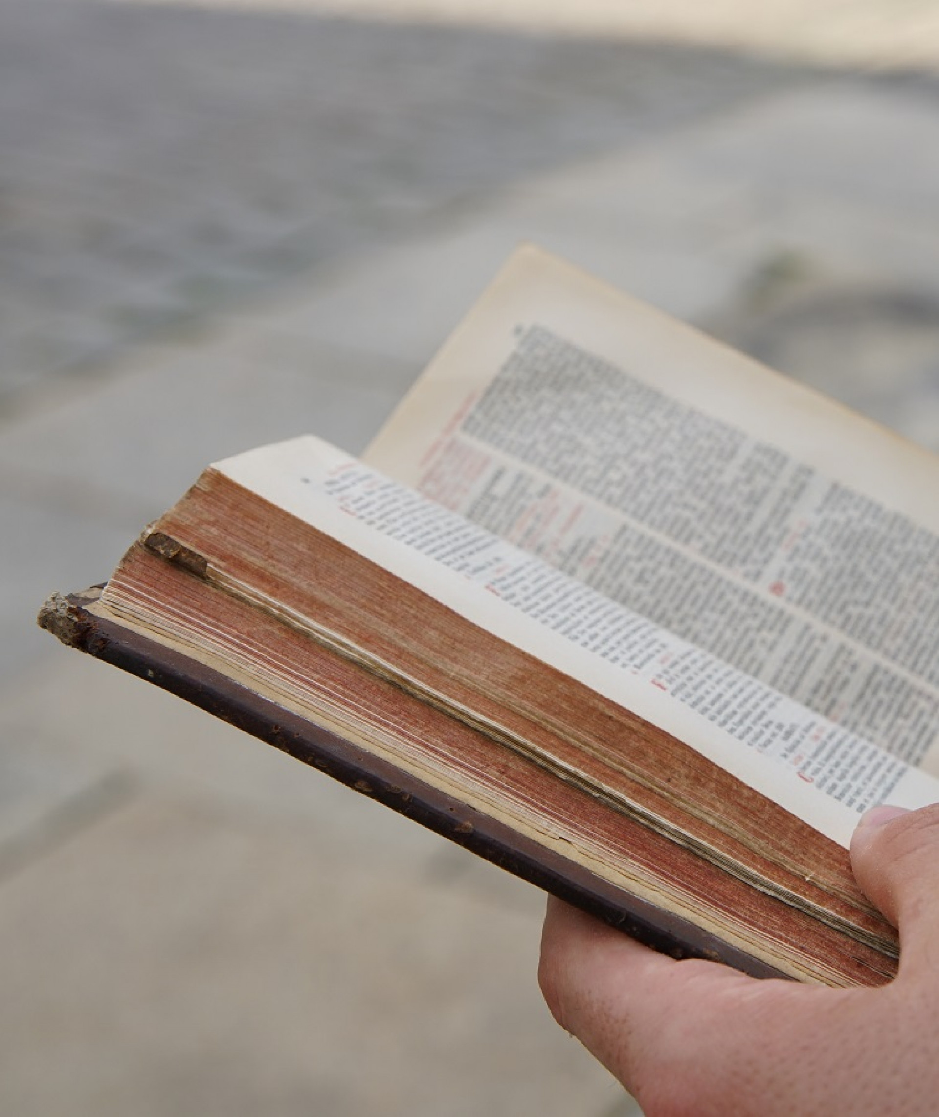 K: Ty nevědomá! To jsou slova Boží! Knížka je zbašty na Büchlu, která se nazývá též muzeum. Rouhání je mezi námi rozšířenovíce než kdy jindy! Zrovna před nedávnem, Léta Páně 1772, jsem kázal dvacátoutřetí neděli v mezidobí o tom, jak to vypadá v našem městysu.