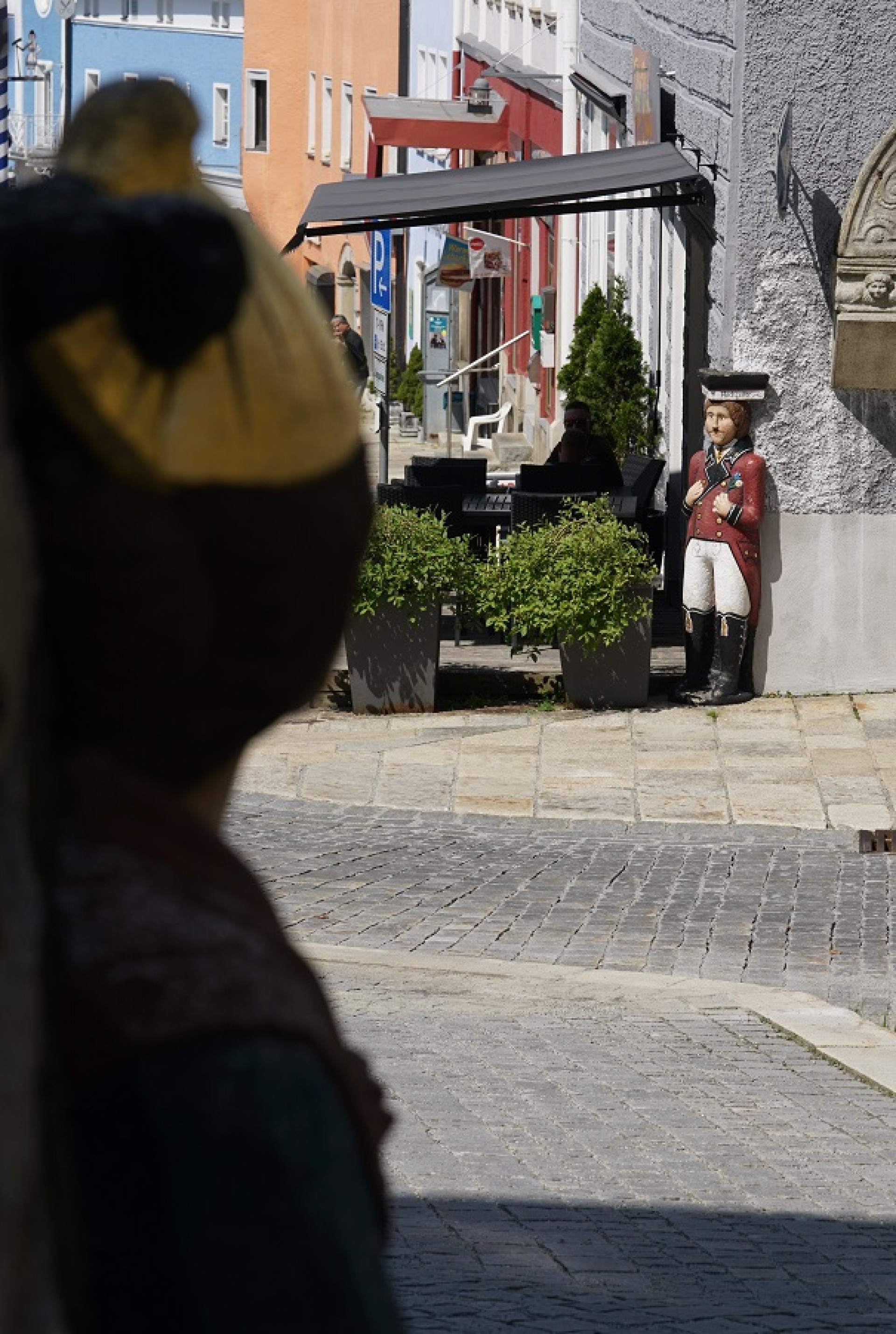 G: Komický čepec,říkáš? To je pravé zlato, něco takového si mohou dovolit je skuteční měšťanénebo bohatí sedláci. Máš vůbec ponětí o starých cennostech? Jestli ne, jdi dálnahoru až k muzeu. Tam se dozvíš, co to znamená být opravdovým waldkirchenskýmměšťanem!